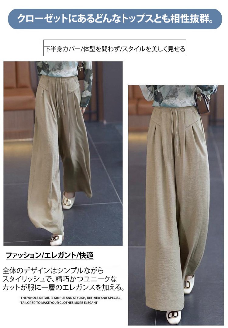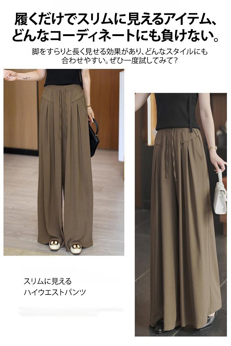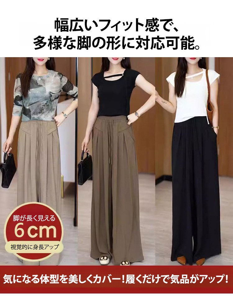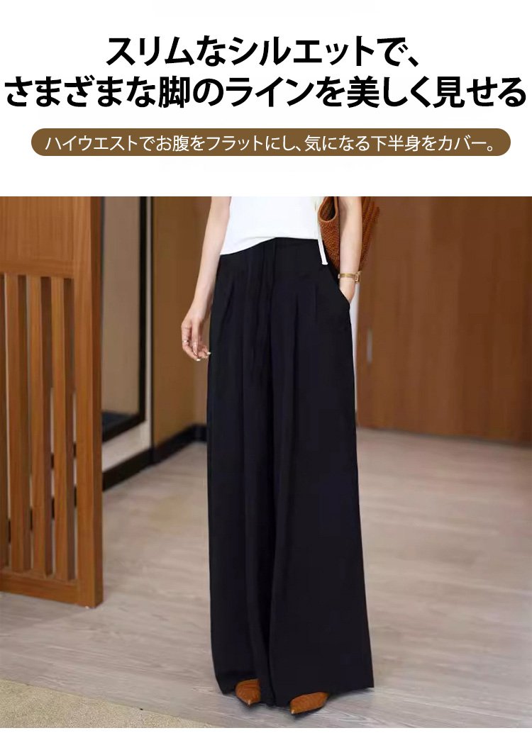 【身長6cmアップ】タック入りワイドパンツ