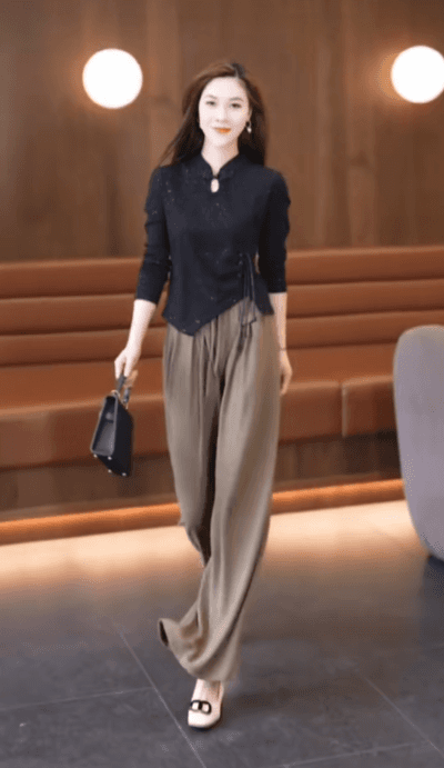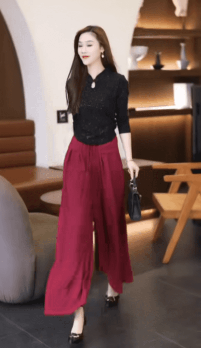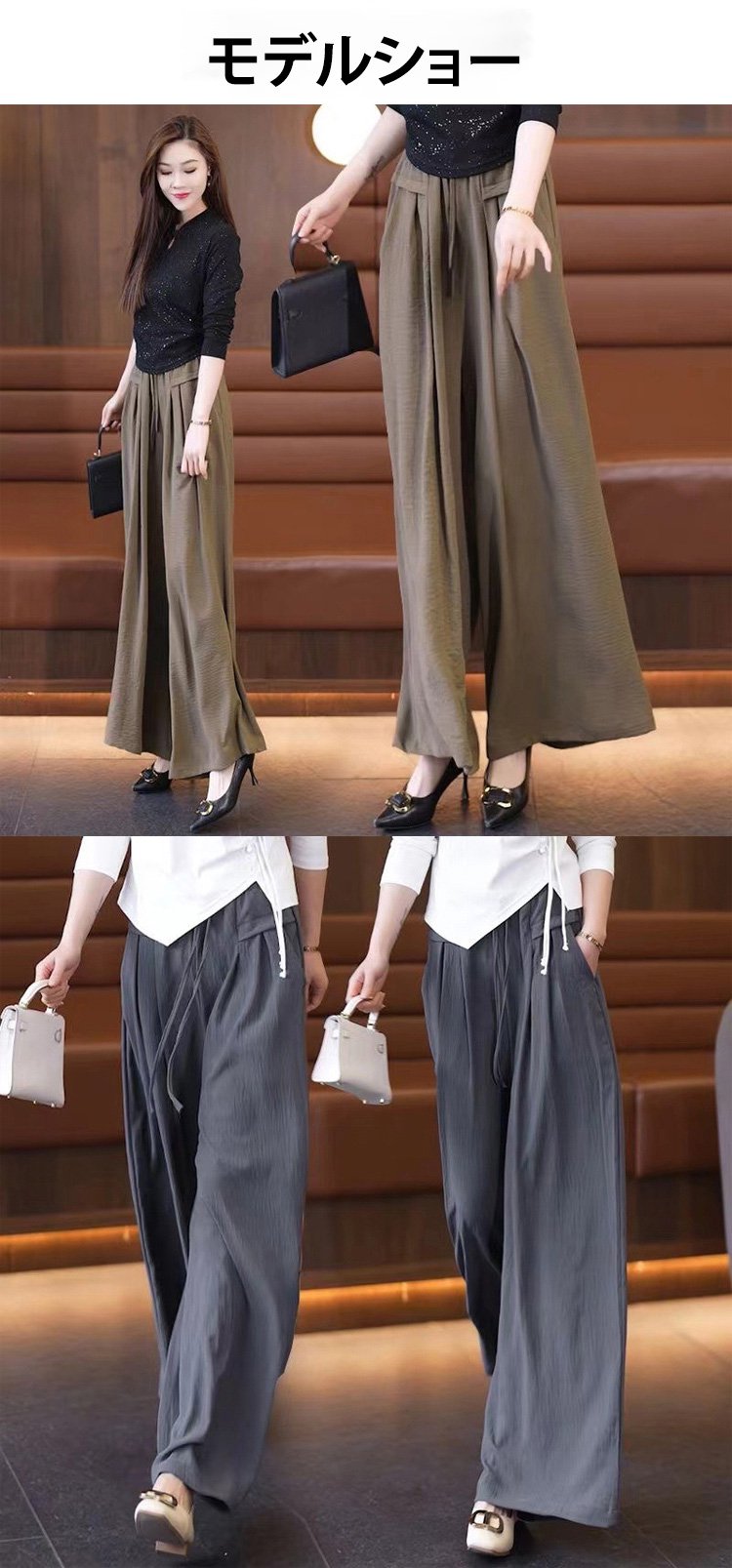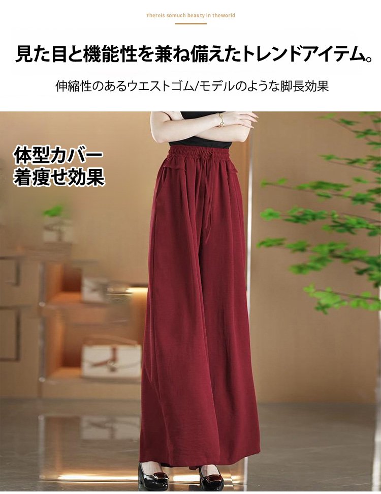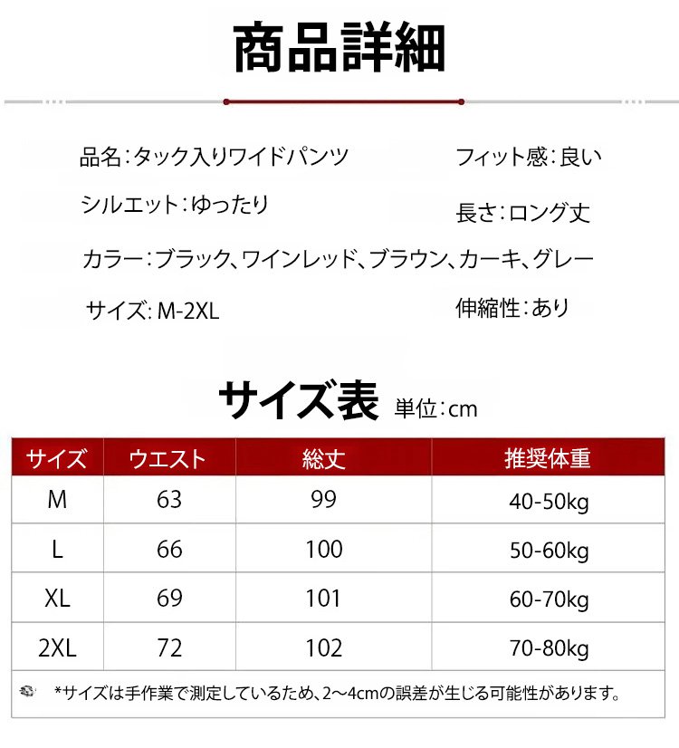 【身長6cmアップ】タック入りワイドパンツ