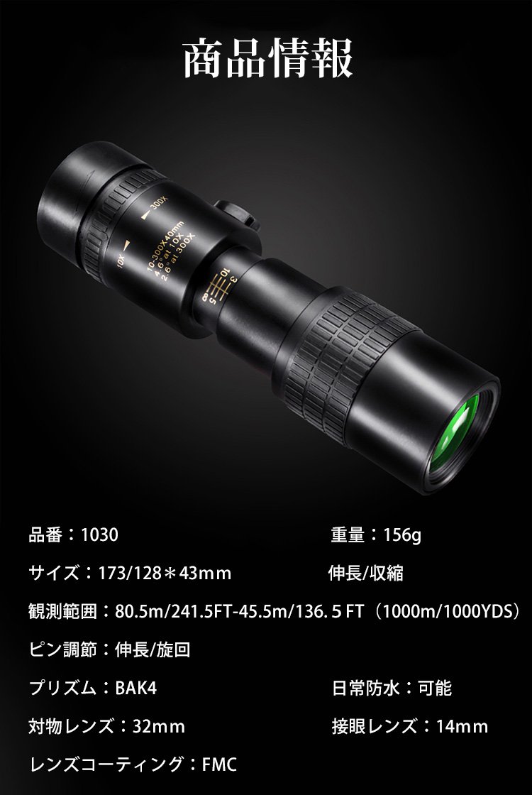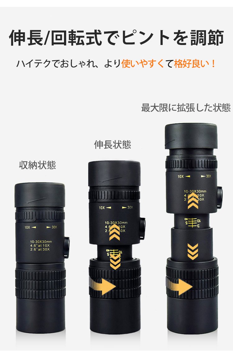 【単眼望遠鏡】伸縮可能、伸長・旋回でピン調節、使用方法が簡単、カメラとして使える、FMCコーティング
